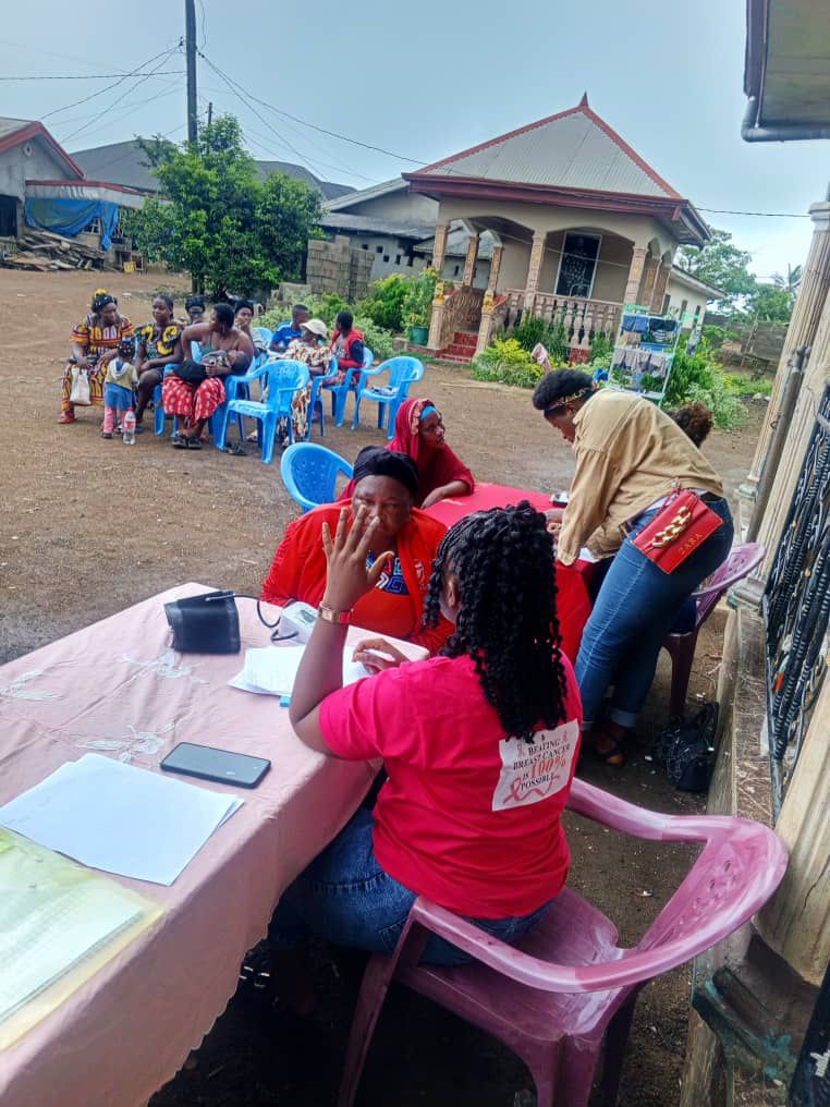 The breast cancer awareness session took place in mile 14 (Dibanda),Buea, Cameroon. The women including the chief’s wife, were empowered with knowledge on breast health and mental wellness. The discussion session allowed participants to share their experiences and gain valuable insights on breast cancer prevention and management.