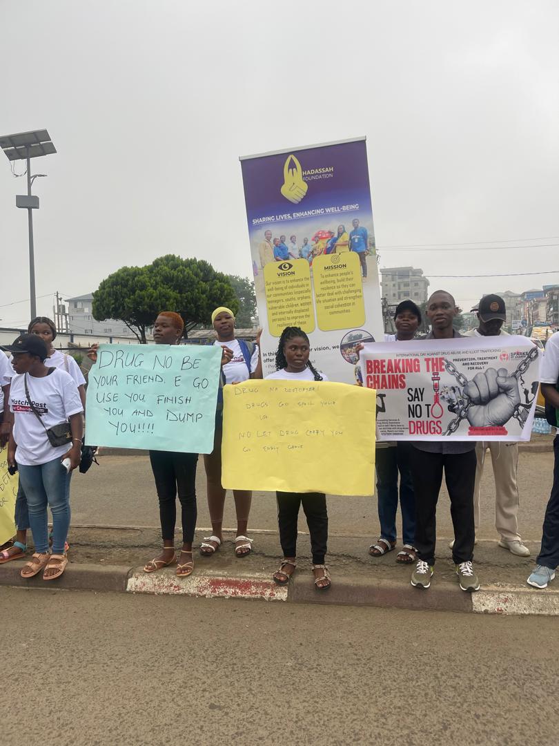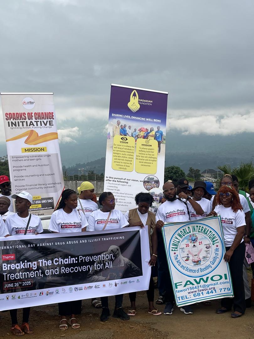 On the 26th of June 2025, Hadassah Foundation workers joined other NGOs in Southwest Region Buea to say #notodrugabuse#. Hadassah Foundation’s primary objective focuses on enhancing wellbeing for all in our community. The use of drugs among youths in Buea and its environs is becoming alarming. While we educate children in schools on the consequences of drug abuse, it is also a brilliant initiative to join the power team of organizers from Mike Yanou Foundation, Lesley Foundation and NKONH HIL TOP ASSOCIATION FOR DEVELOPMENT (NADEV).