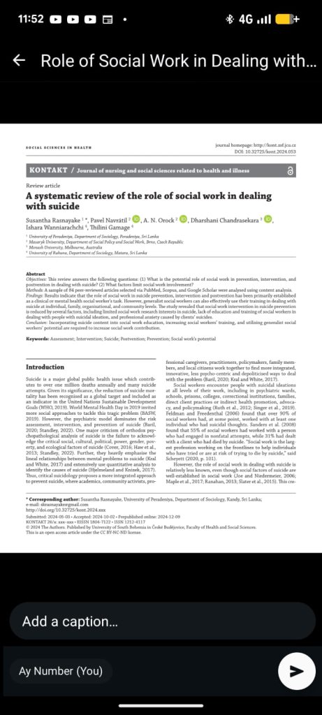 In September, which was the month of Suicide prevention, we present another interesting work of our executive director and her colleagues on the role of social work in dealing with suicide.